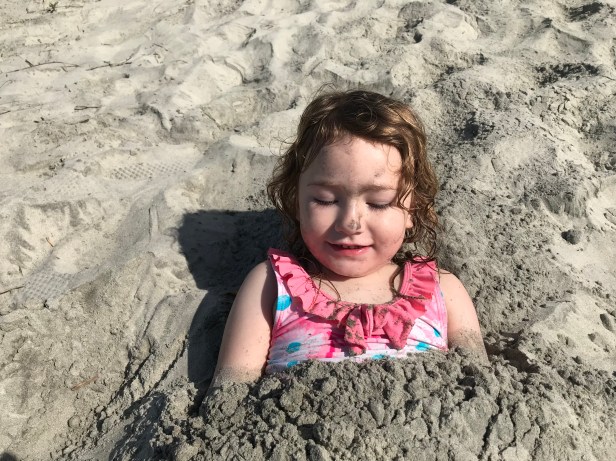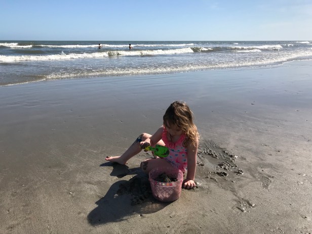 After Iris’s birthday, the next event to look forward to was a visit to North Carolina to see my sister Liz and her family. I’ve visited Liz many times over the past 17 years or so. In the pre-kid days, we’d stay up half the night talking. We don’t have the energy for that anymore but with the kids we do different activities. She’s taken me to the beach several times and we went again this time. I am mesmerized by the ocean, whether it be a warm, sunny Atlantic beach, or an icy Pacific beach. Iris loves it too. If it was up to her, we’d definitely live near a beach.