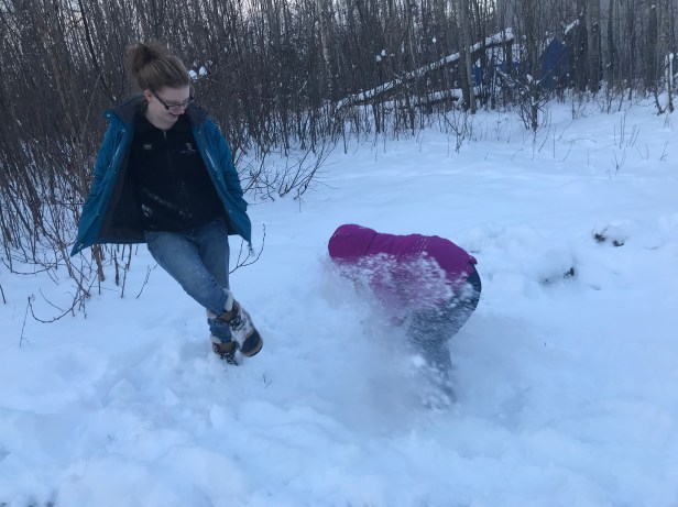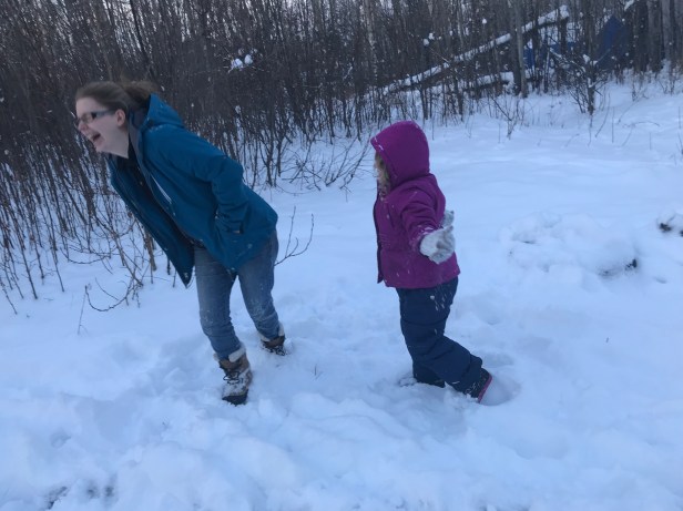 She loves hotels. It’s definitely a huge part of the travel experience for her. I was hoping for a bit more sleep but after approximately 3.5 hours and still very much dark outside, she was ready to get the day started. I can’t get over how much she loves the snow and just to be out in it makes her happy. So that’s what we did. Ten feet away from the hotel door, she made her first snow angel.