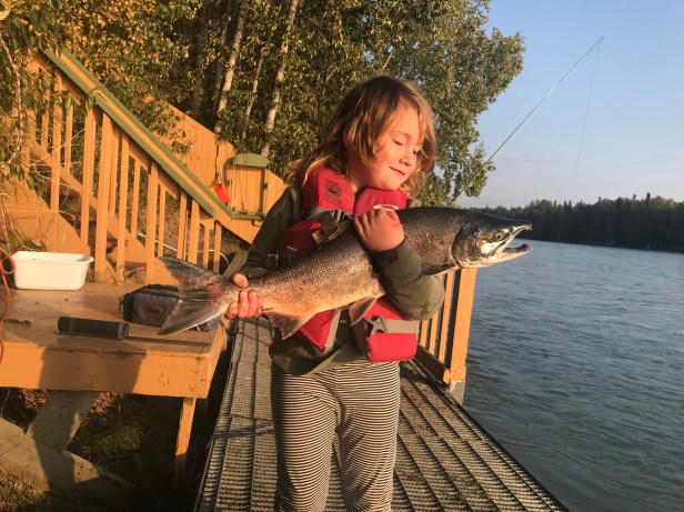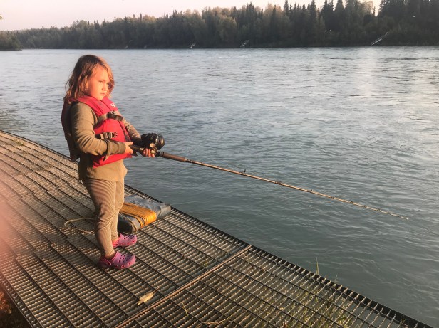 There was a children’s book I read to Iris while we were on the ferry titled “My Lucky Day.” The plot contained a piglet who outsmarted predator animals to get what he wanted. At the end of the book, the piglet says something like, A bath, a nice meal and a massage — it must be my lucky day! I didn’t think about any special meaning to the story until a few nights ago when we went down to the river where there was a helpful fisherman who let Iris reel in a beautiful sockeye salmon, and then cleaned it for us to eat. I said to Iris, “This must be our lucky day!” And I’d been thinking that for the past few days, how lucky we were to be where we were and have everything go so smoothly. But is it luck? Or, like the piglet who made his own “luck,” is it the confluence of hard work, knowledge, planning, resources, karma, kismet, Providence, answer to prayers or any combination of those. I suppose whatever you want to call it, the result is the same. We are happy and settled right where I’ve wanted to be for a while, on the Kenai Peninsula of Alaska, right on the Kenai River, in a town called Soldotna.